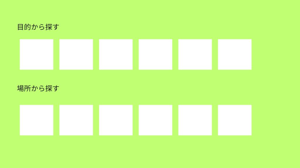 こんなとき、目的だったり、場所から、探せるのであれば、わかりやすいですよね。